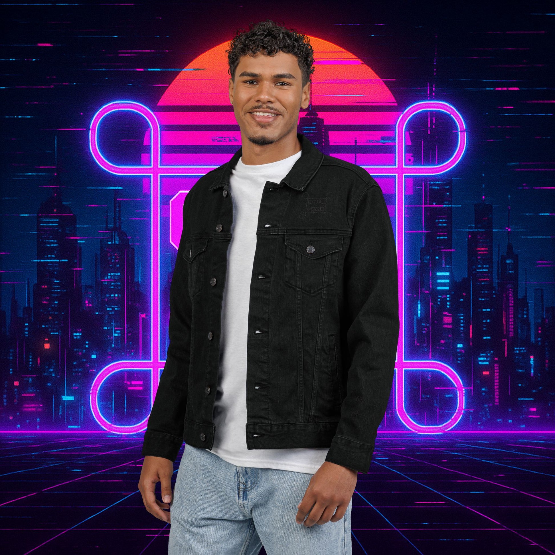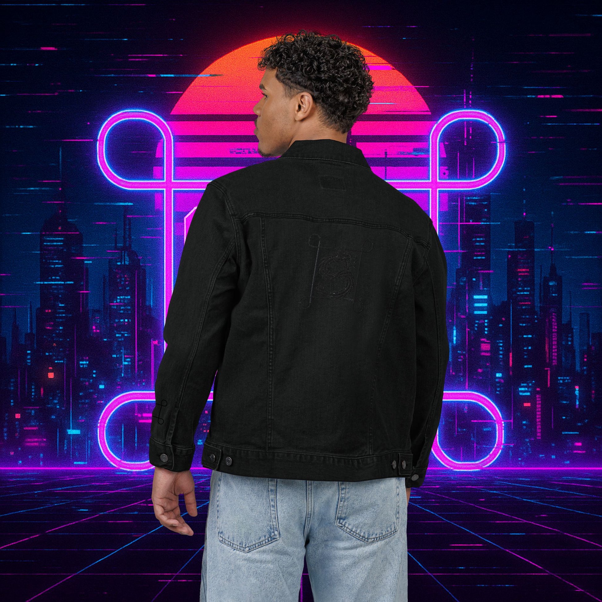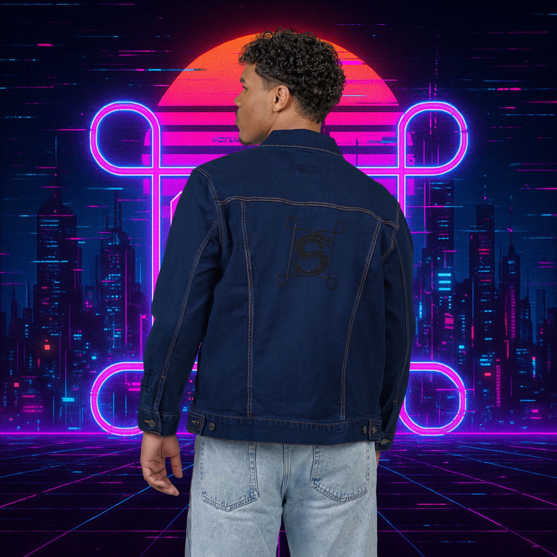 Black Embroidered Street Dragon Unisex Denim Jacket