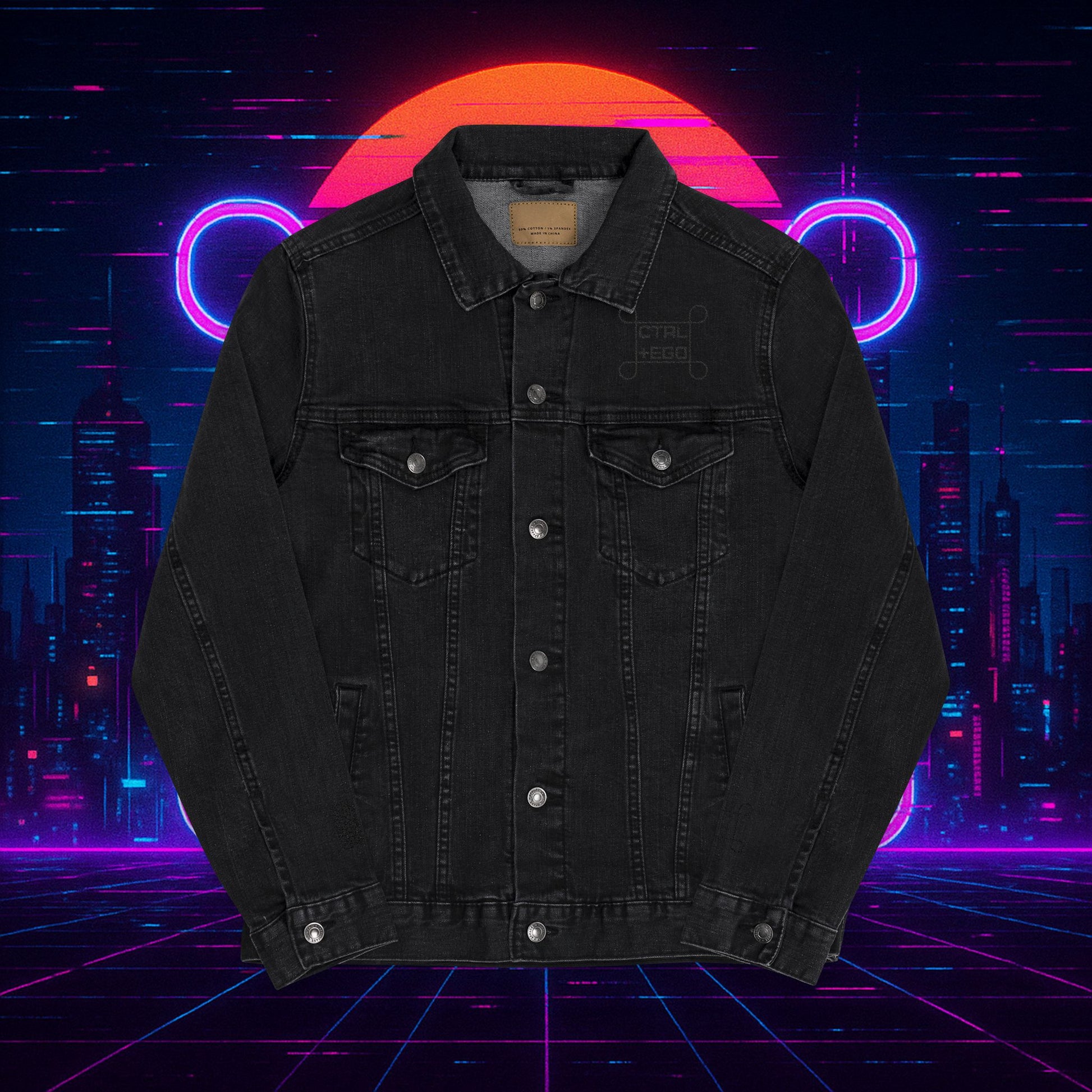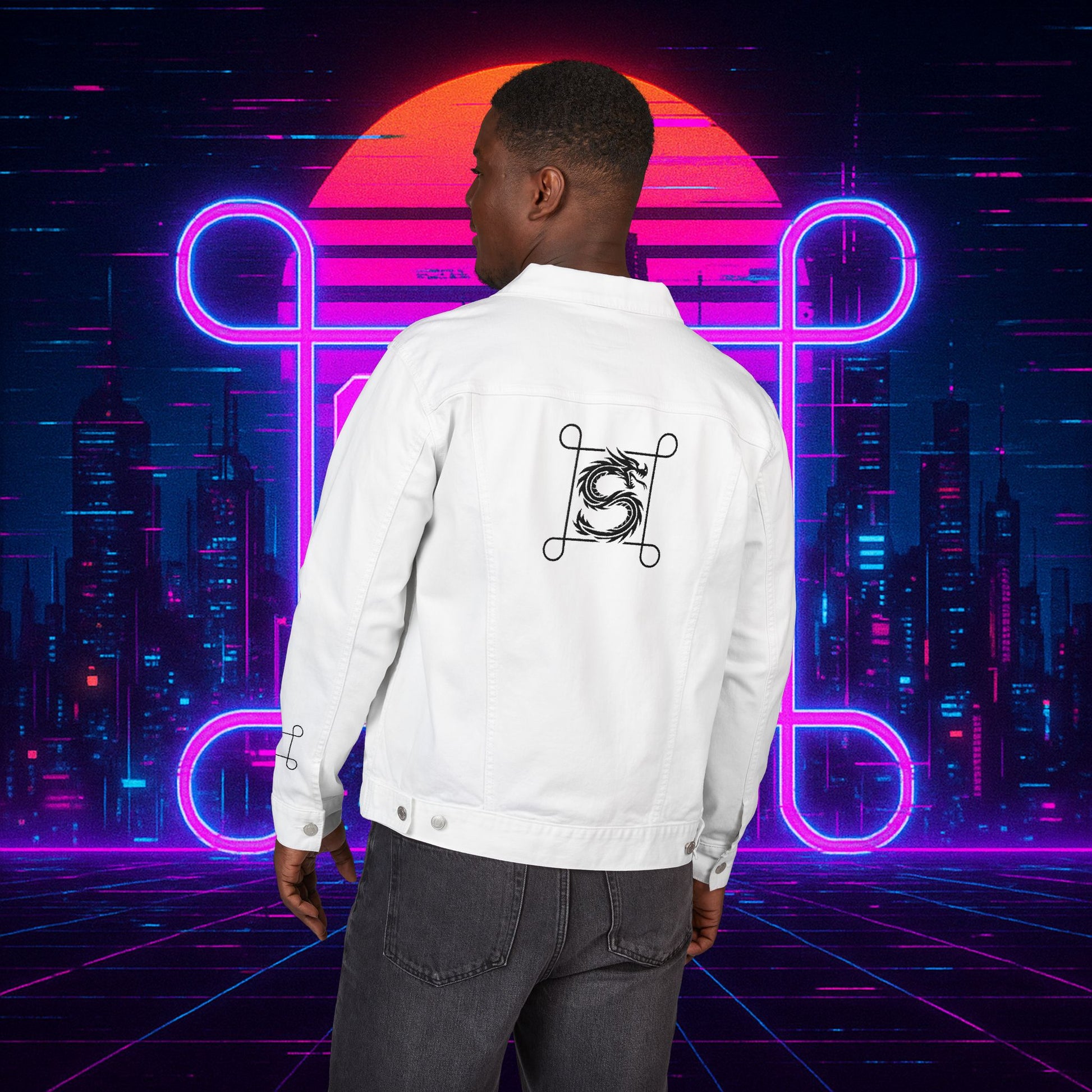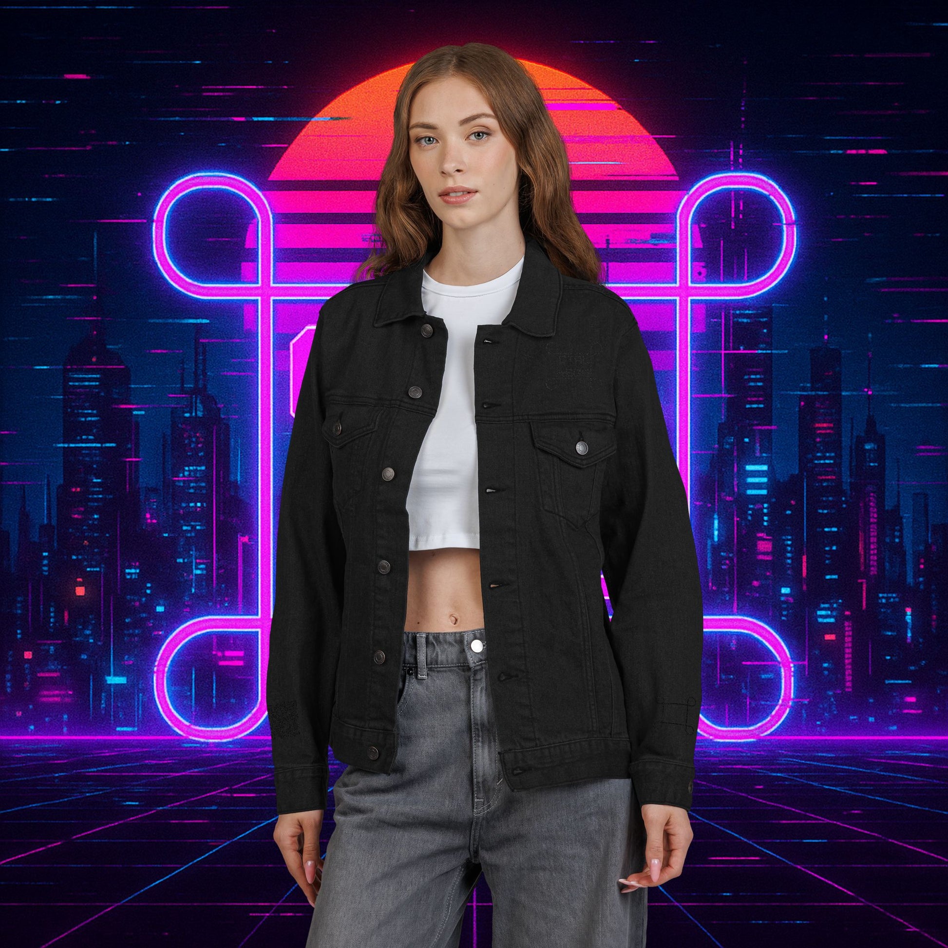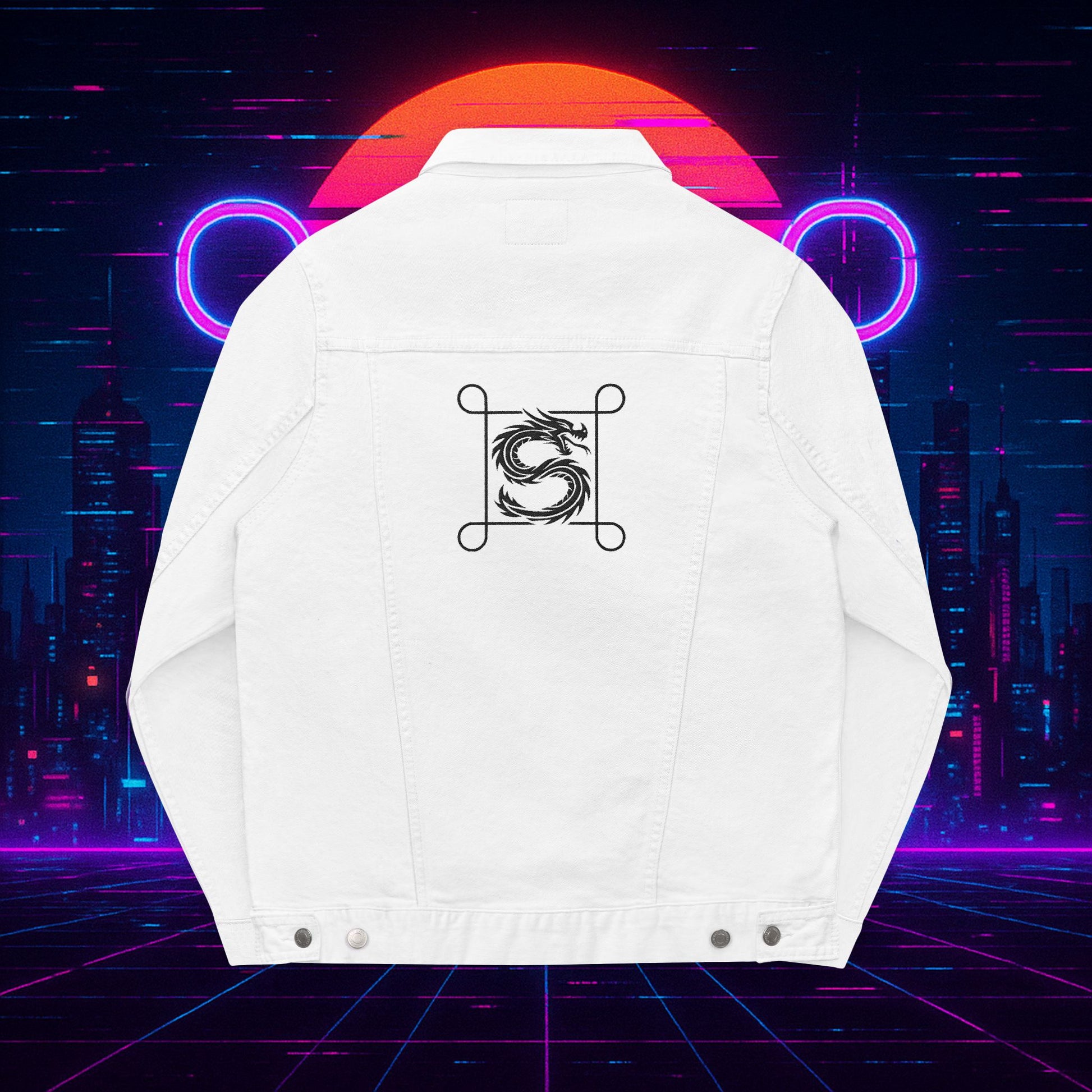 Black Embroidered Street Dragon Unisex Denim Jacket