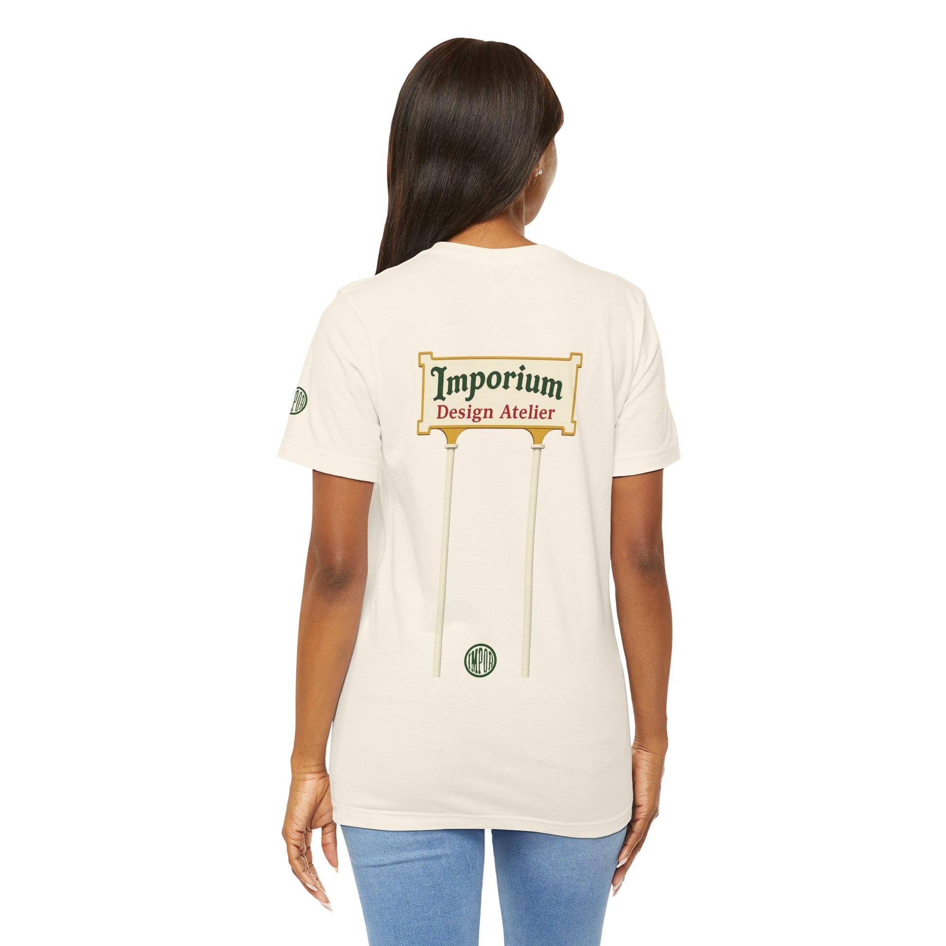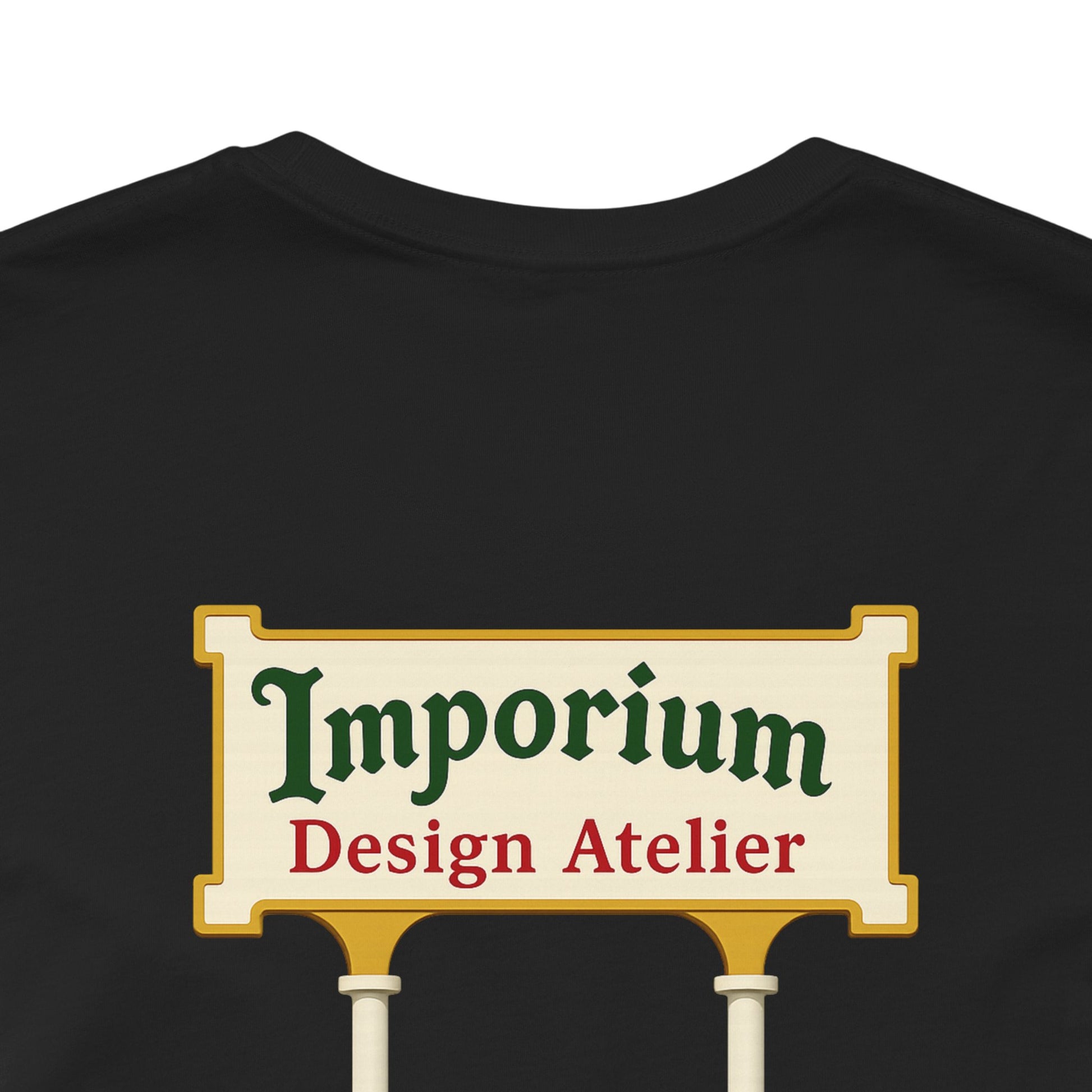 Inspired by the iconic signage and elegance of Miami’s most recognizable food landmarks, the Imporium Design Atelier Sign Tee blends heritage design with streetwear attitude. The front keeps it clean with a subtle chest print, while the back makes a bold statement with a vintage sign-inspired logo framed in gold and deep green.