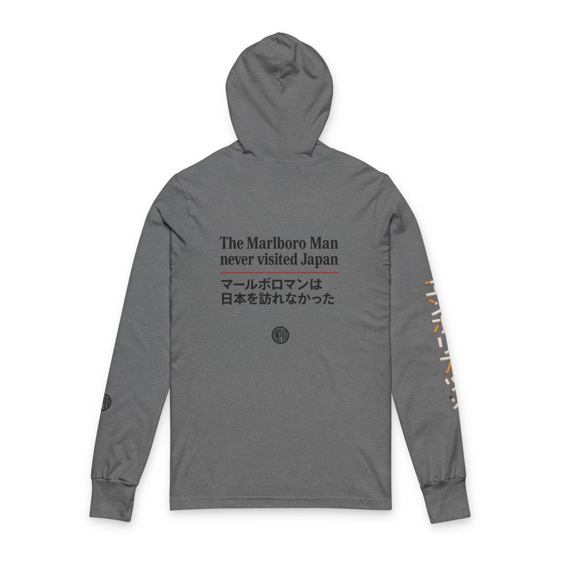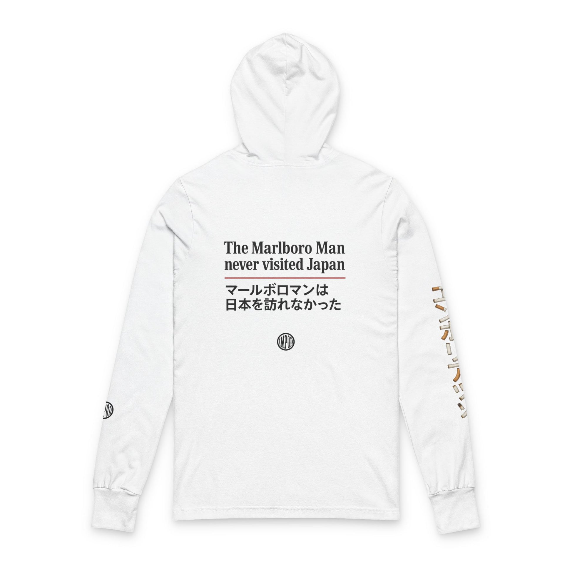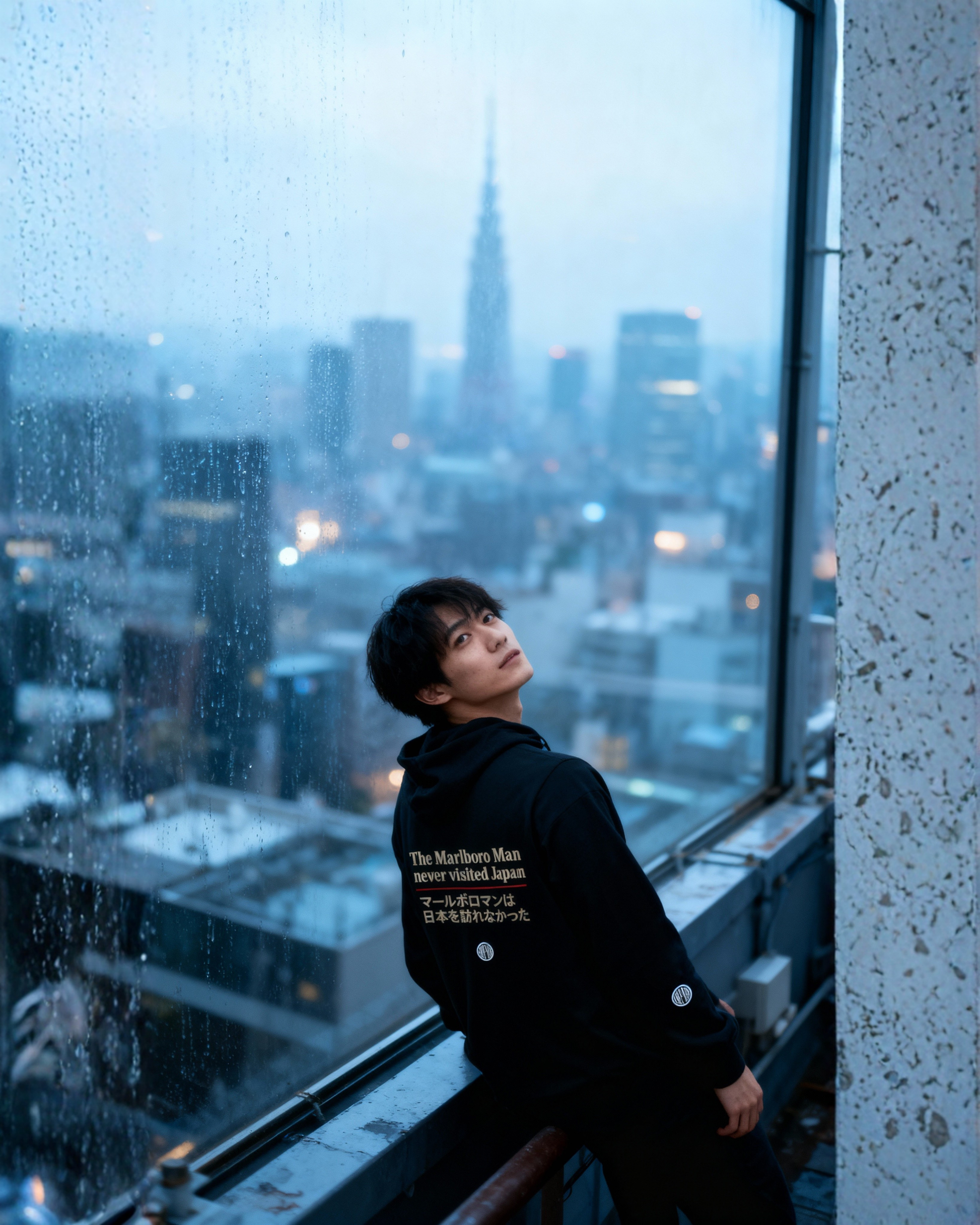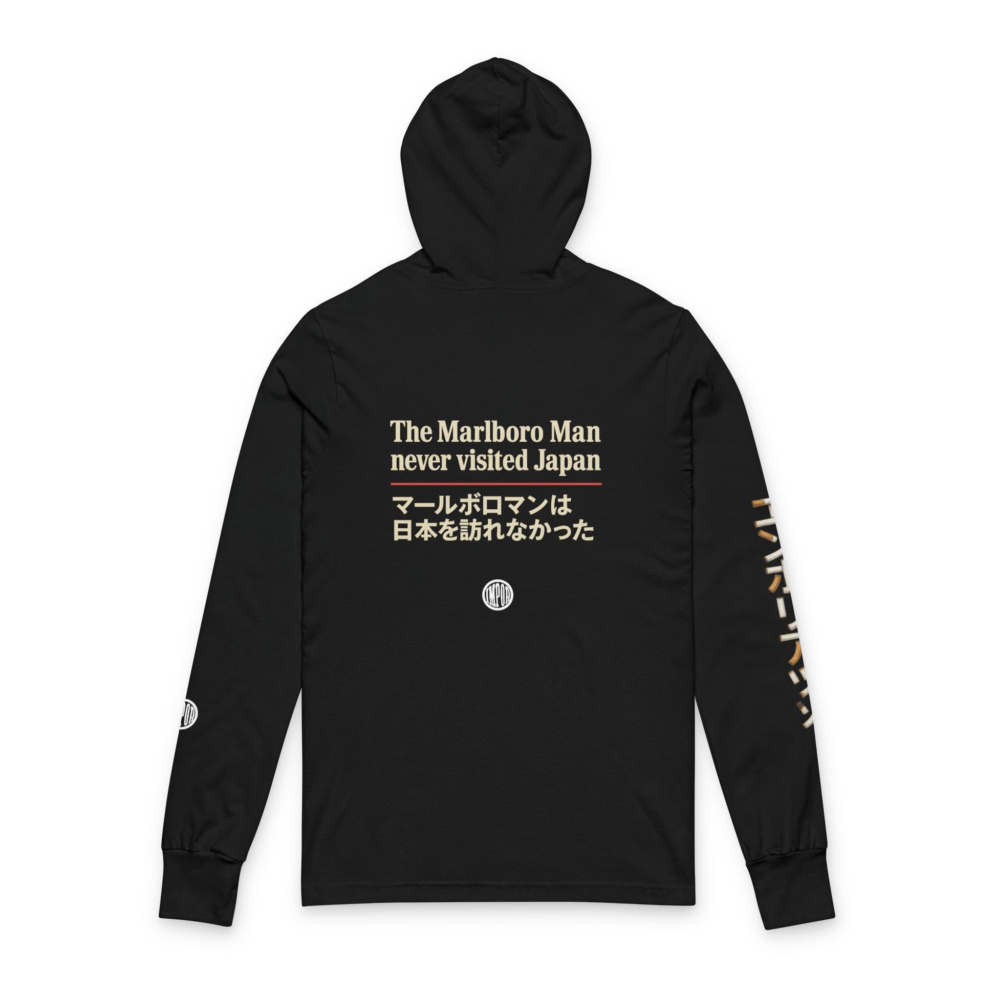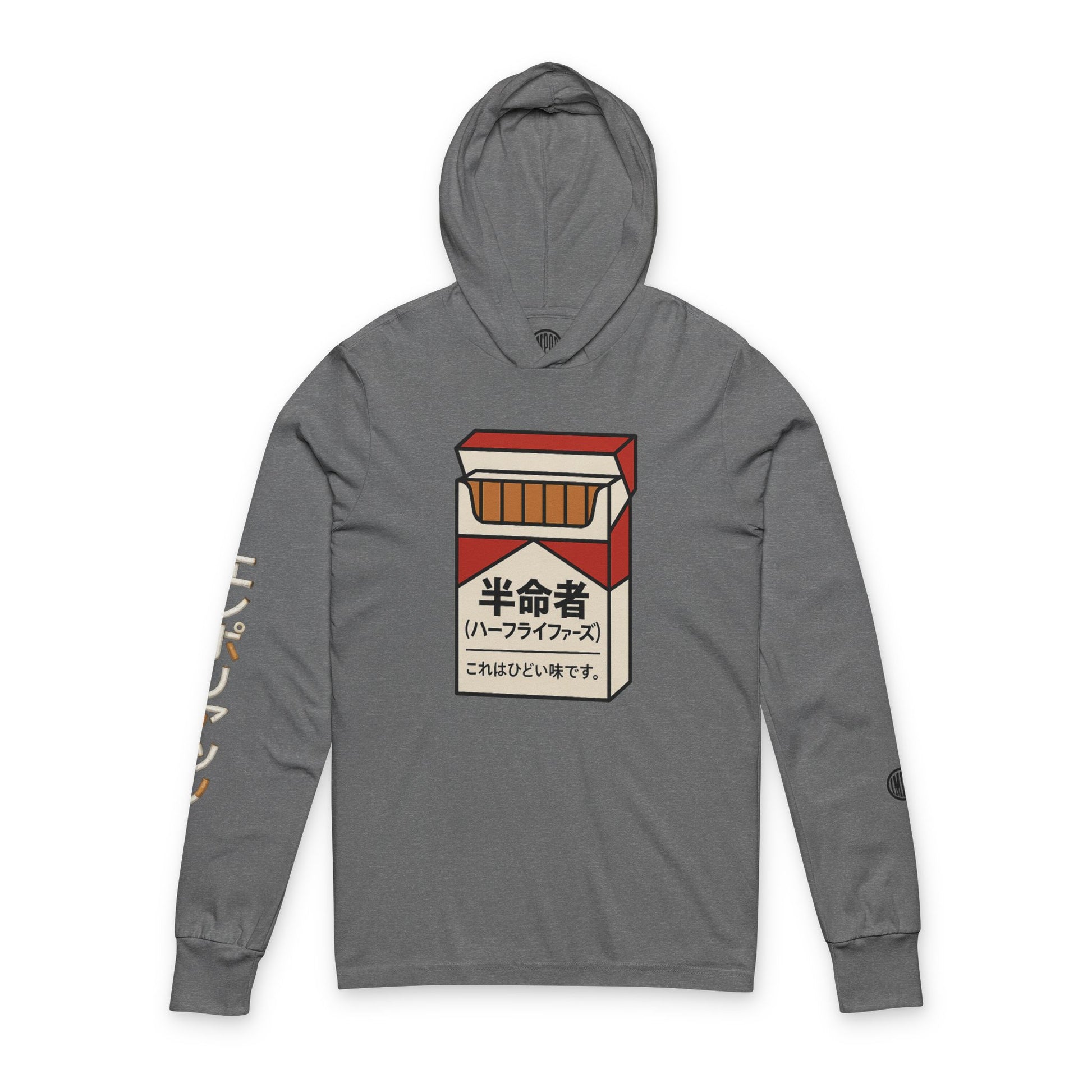 This hoodie isn’t a promotion of cigarettes albeit far from it. As the founder, I hate them. But as a former smoker, I can acknowledge the culture, the ritual, and yes, the taste. That appreciation comes with the flip side: bad-smelling clothes, bad breath, stained walls, and looking older than you are. This piece is a note to that duality: a shoutout to Japan, a nod to the ones who don’t care, and a reminder of the consequences.