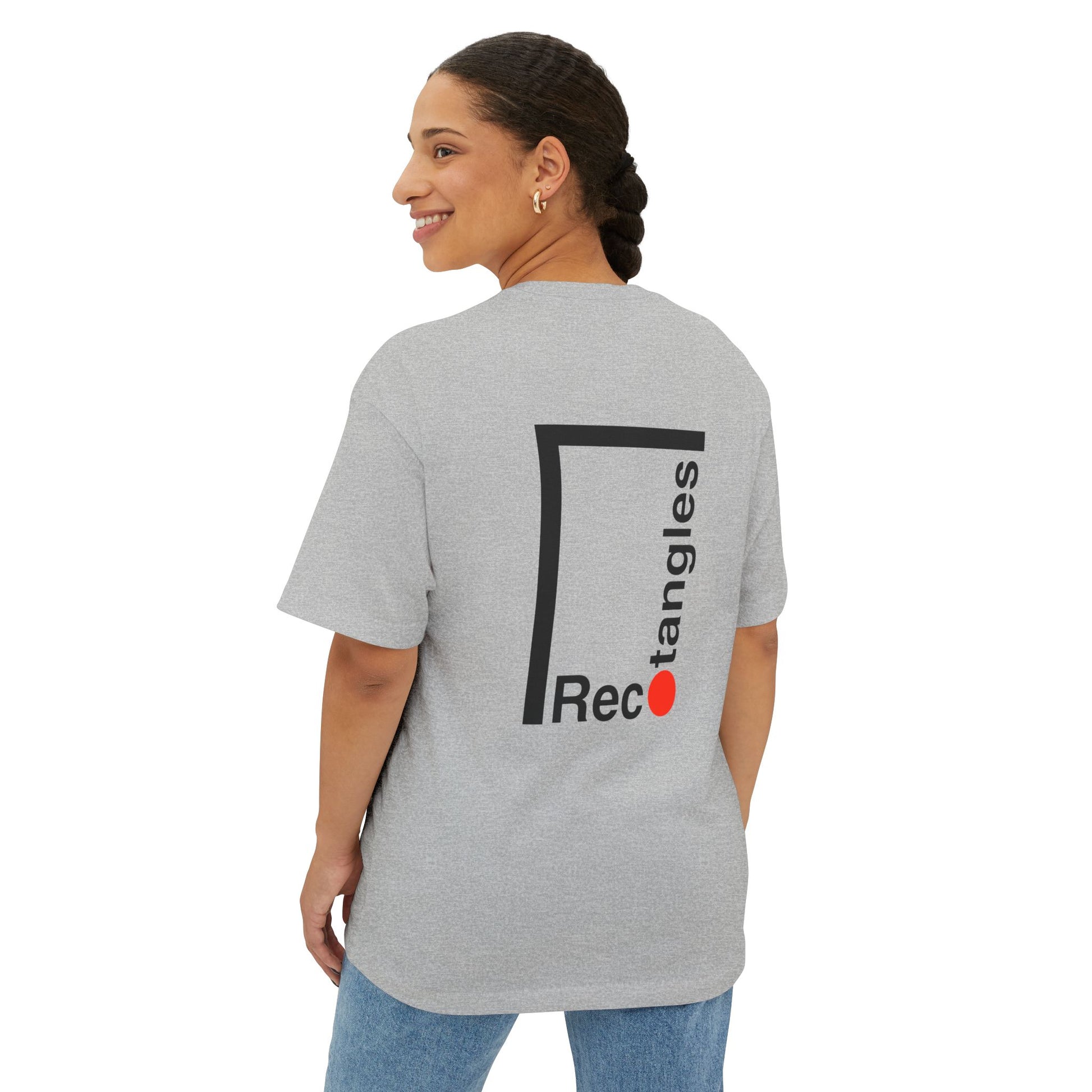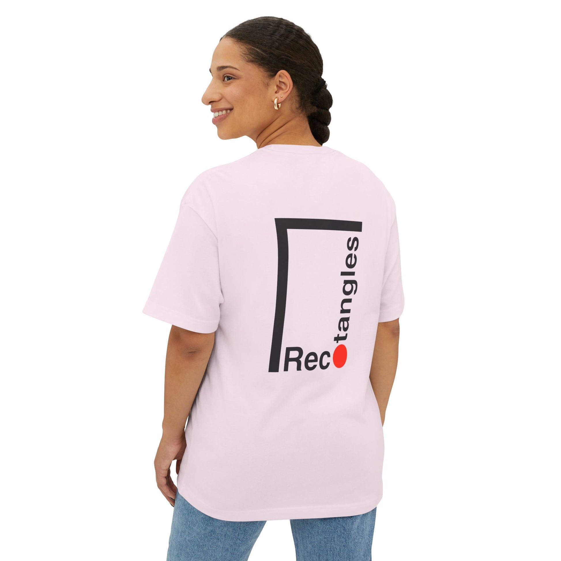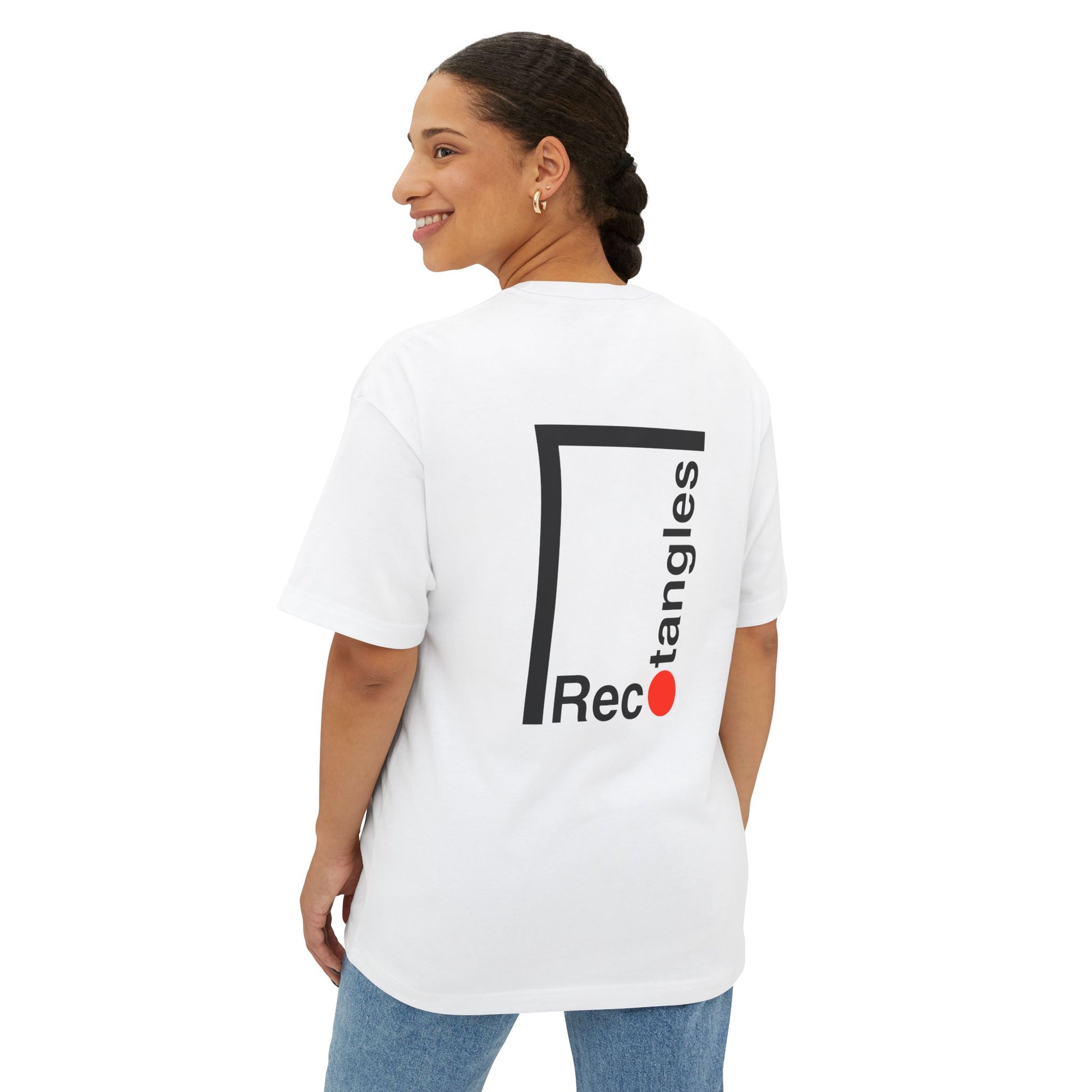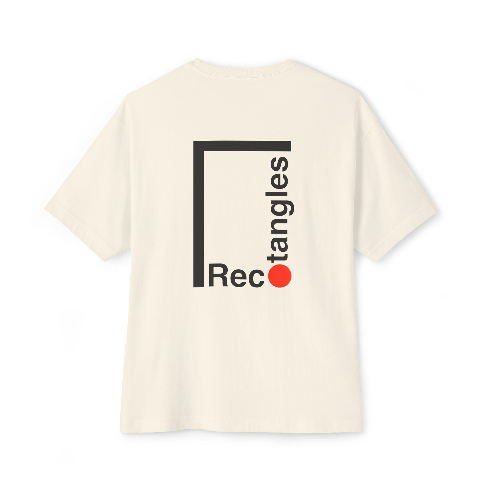 A unisex oversized boxy tee featuring the Logo of the Rectangles Podcast, perfect for fans of film and TV. This tee gives off a casual and relaxed vibe, making it ideal for everyday wear or lounging around. Relevant for podcast enthusiasts and fans of the show,