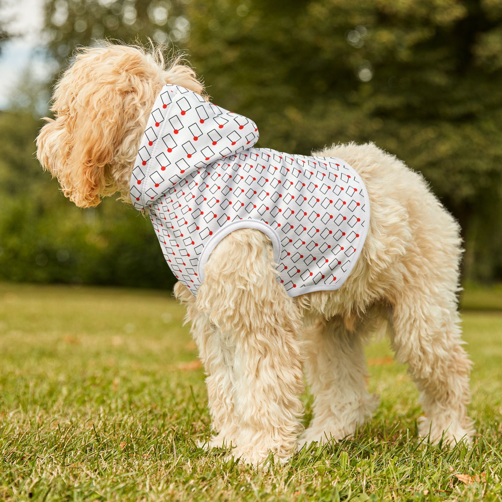 Let your favorite pup rep their favorite podcast with The Rectangles Podcast Signature Pet Hoodie. Covered in our signature minimalist rectangle pattern, this soft cotton-blend hoodie keeps four-legged super-fans warm on brisk walks, couch-binges, and every photo op in between. A roomy hood, easy-step armholes, and stretch hem mean fuss-free dressing and all-day comfort, while the lightweight fleece lining adds just enough coziness without overheating. Whether you’re queueing the latest episode, hitting the dog park, or hunting for the perfect gift for a fellow listener, this hoodie lets your pet rep the show in style. Available in sizes for XX-Small to XX-Large dogs, because every good podcast needs a loyal sidekick.