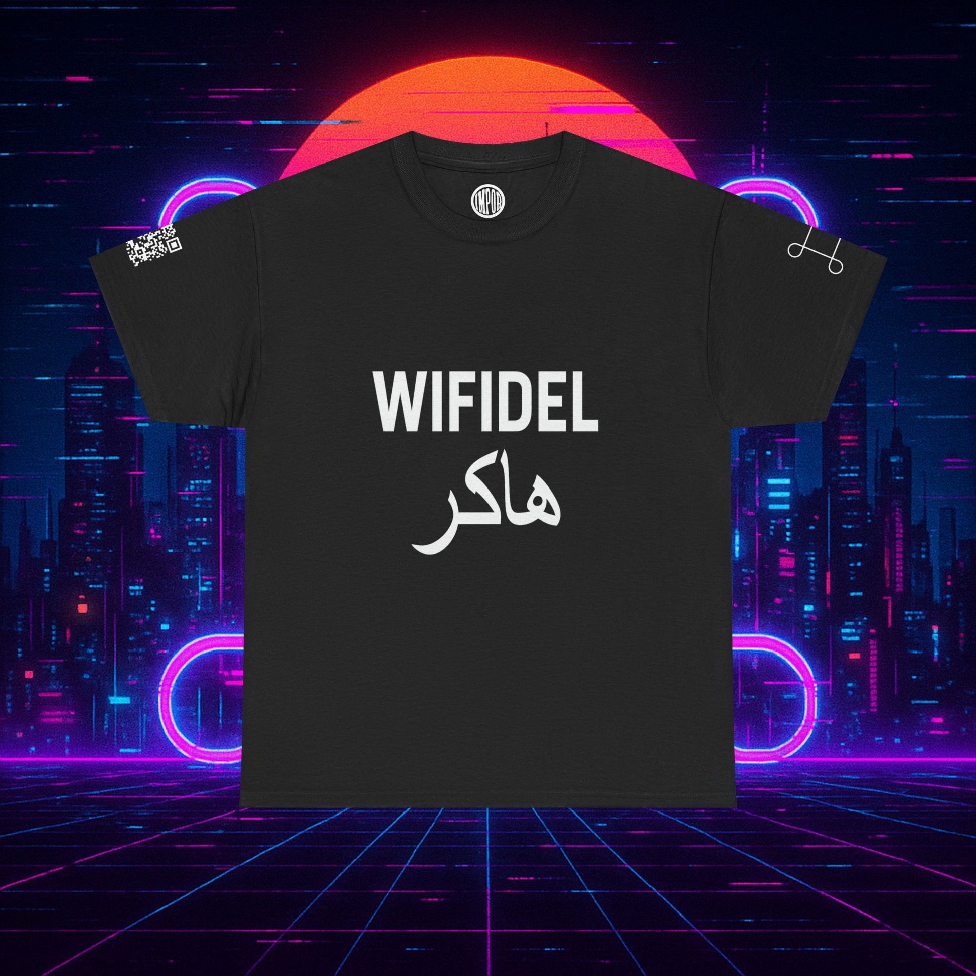 Front and center, WIFIDEL sits bold in stark lettering, with “Hacker” spelled out in Arabic beneath it. It’s a signal to the underground, a badge for the ones who see the web not as a network, but as a frontier.